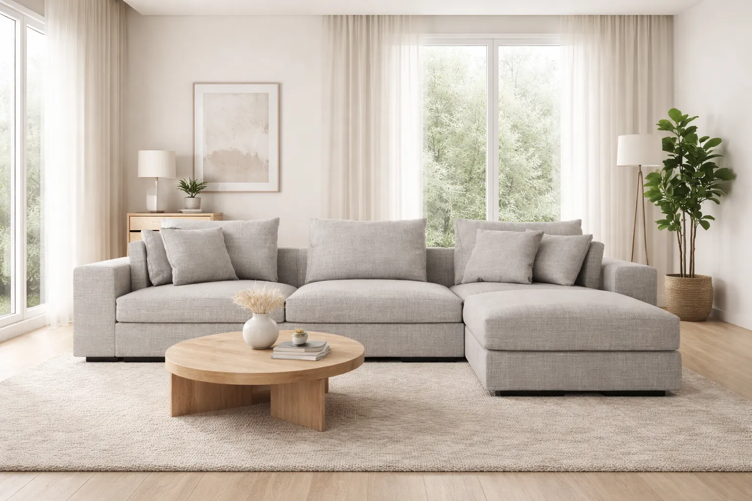 Divano angolare in tessuto 265x160x85 cm – grigio chiaro – stile contemporaneo