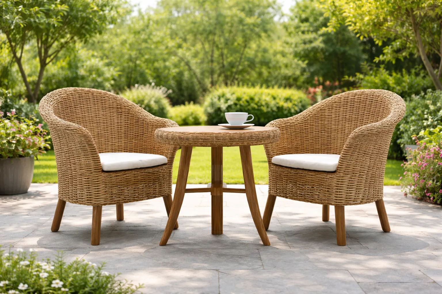 Set tavolo e sedie da giardino 3 pezzi – rattan naturale classico