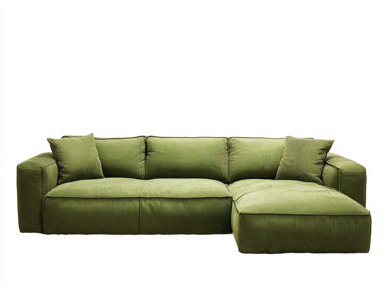 Divano angolare in velluto 260x158x84 cm – verde oliva – stile moderno