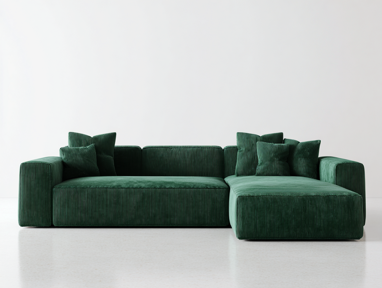 Divano angolare in velluto 265x160x85 cm – verde scuro – stile elegante