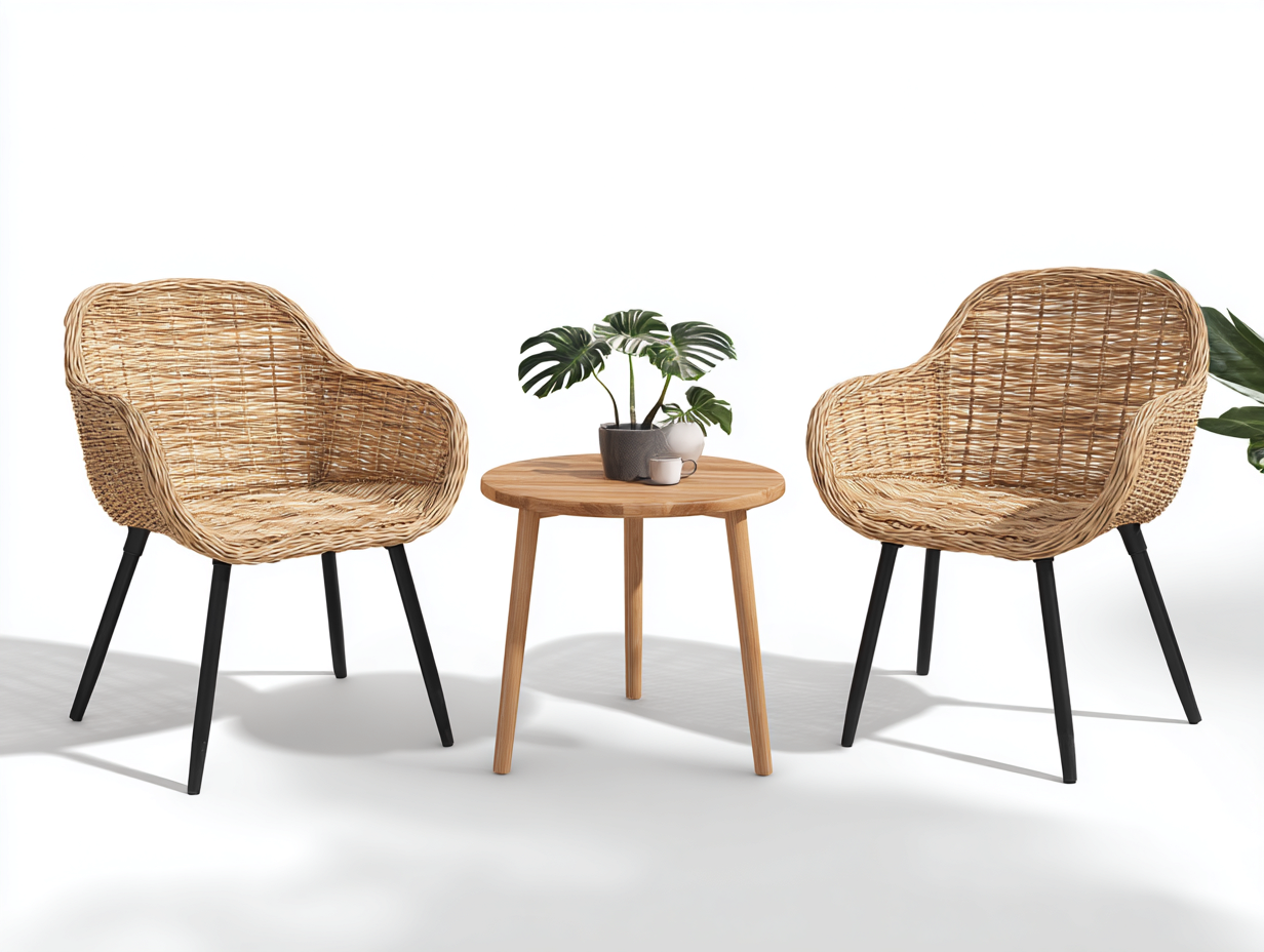 Set tavolo e sedie da giardino 3 pezzi – rattan moderno